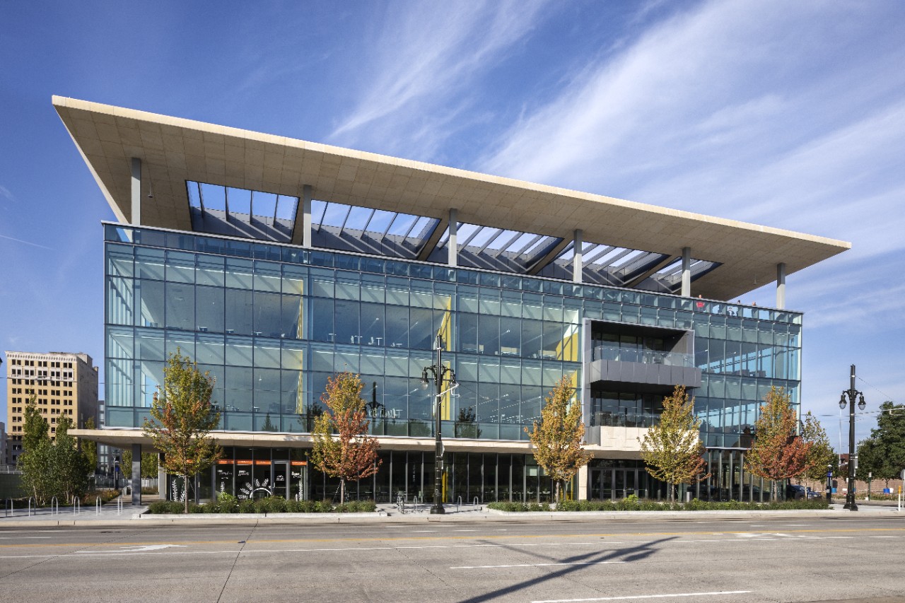Tòa nhà mới này ở đại học Wayne State sử dụng kính và các đường góc cạnh để thể hiện các lý tưởng hiện đại trong khi thúc đẩy truyền thống nổi bật và oai nghiêm trong ngành giáo dục kinh doanh. Mặt dựng chính dọc Đại lộ Woodward là hệ vách thanh nhã bằng kính SunGuard® SNX 62/27 trên nền trong suốt cho tầm nhìn cả ở bên trong lẫn bên ngoài không gian học tập.