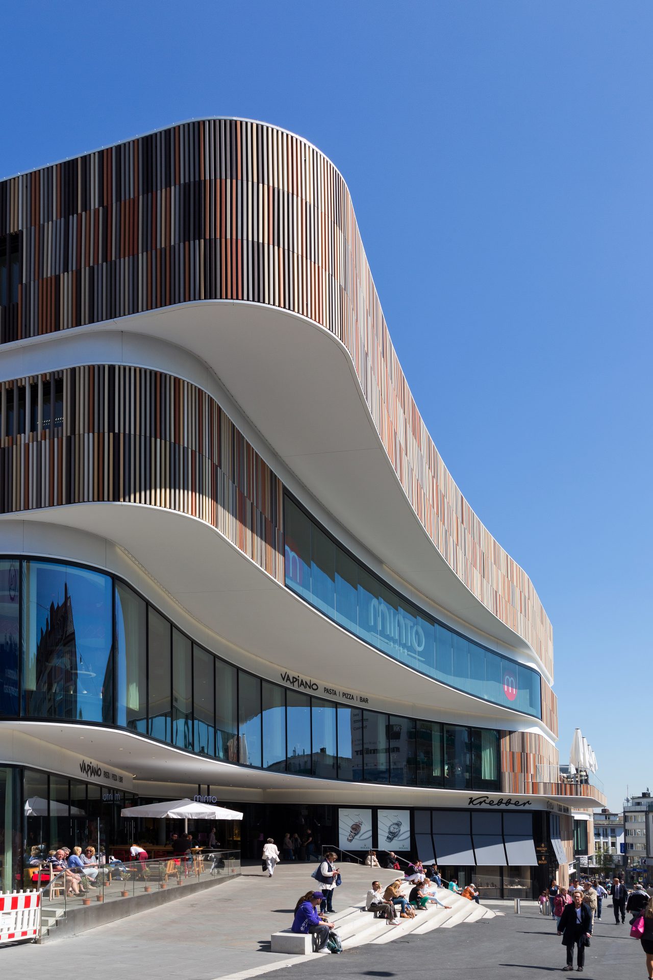 Fasáda centra Minto, které bylo otevřeno v roce 2015, byla navržena podle plánů kanceláře kadawittfeldarchitektur v Cáchách. Budova je obložena od podlahy ke stropu směrem dovnitř zakřivenými fasádními pásy, jejichž trojrozměrný tvar na městské prostředí reaguje odlišně. Jemné křivky svislých lamel přitahují pozornost kolemjdoucích ke vstupů, které vytváří terasy a kryté otevřené prostory. Fasáda tak plní funkci jako rozhraní mezi budovou a městským prostorem.