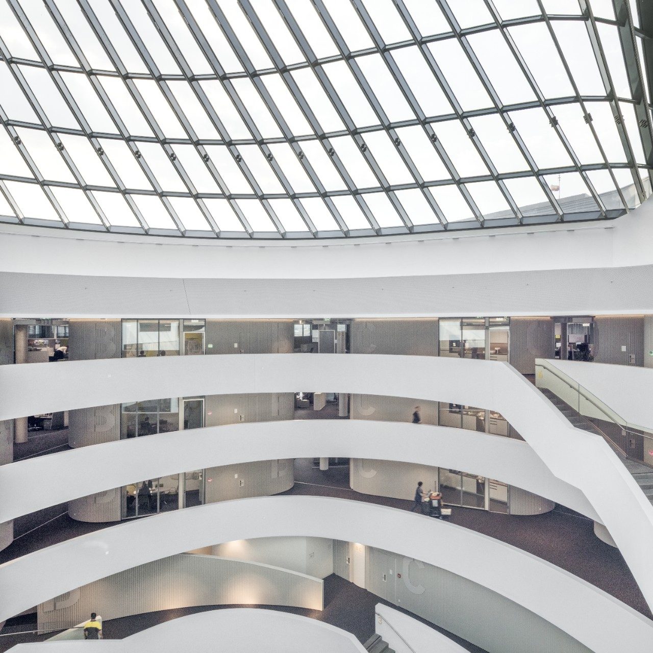 Der 2016 in Wien, Österreich, dem Hauptsitz des ÖAMTC, fertiggestellte Österreichische Automobil-, Motorrad- und Touring Club (Österreichischer Automobil-, Motorrad- und Touring Club) wurde so konzipiert, dass er für alle in alle Richtungen offen ist. Seine unglaubliche Form, sowohl kreisförmig als auch sternförmig, ermöglicht es allen Teilen des Gebäudes, miteinander zu kommunizieren.