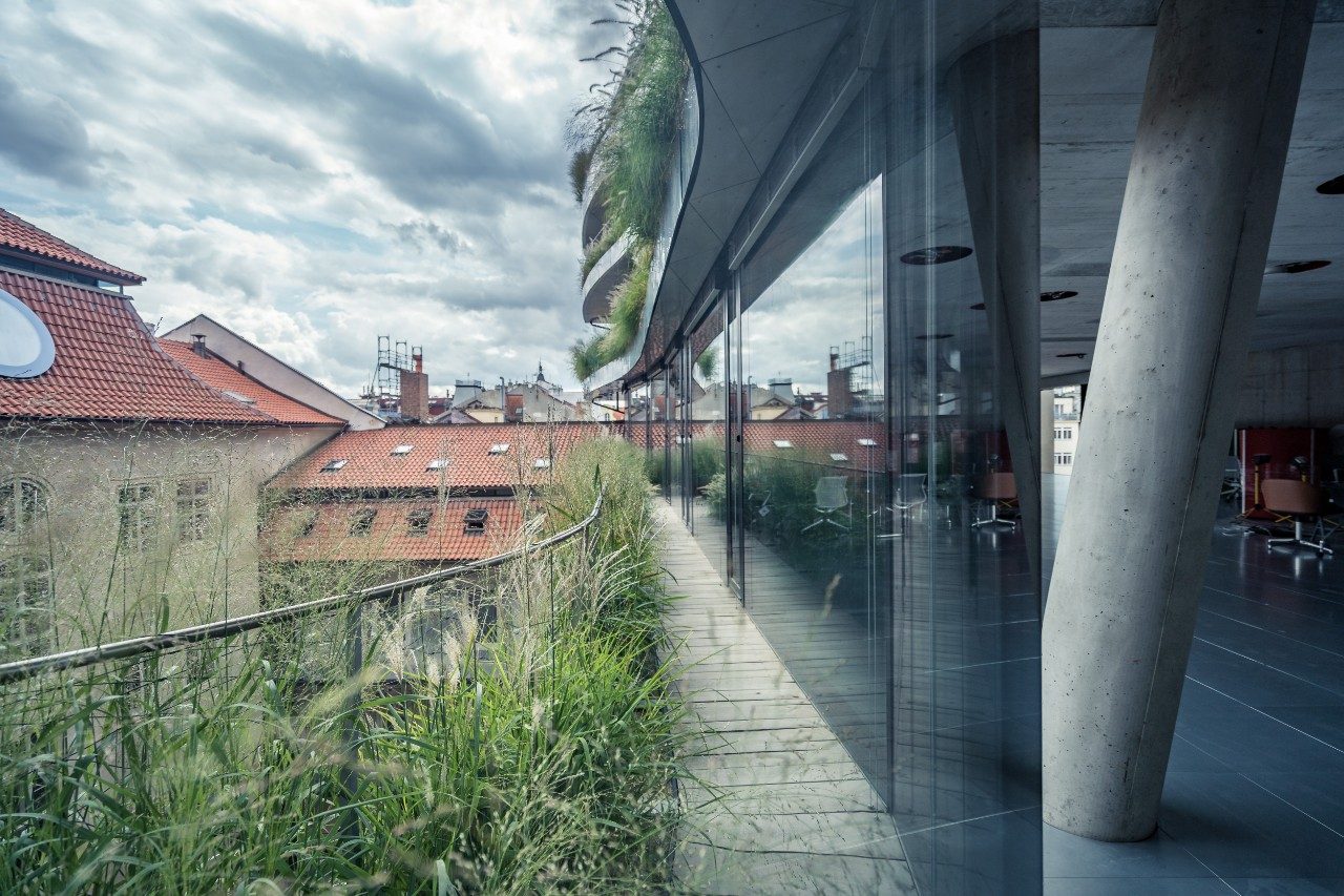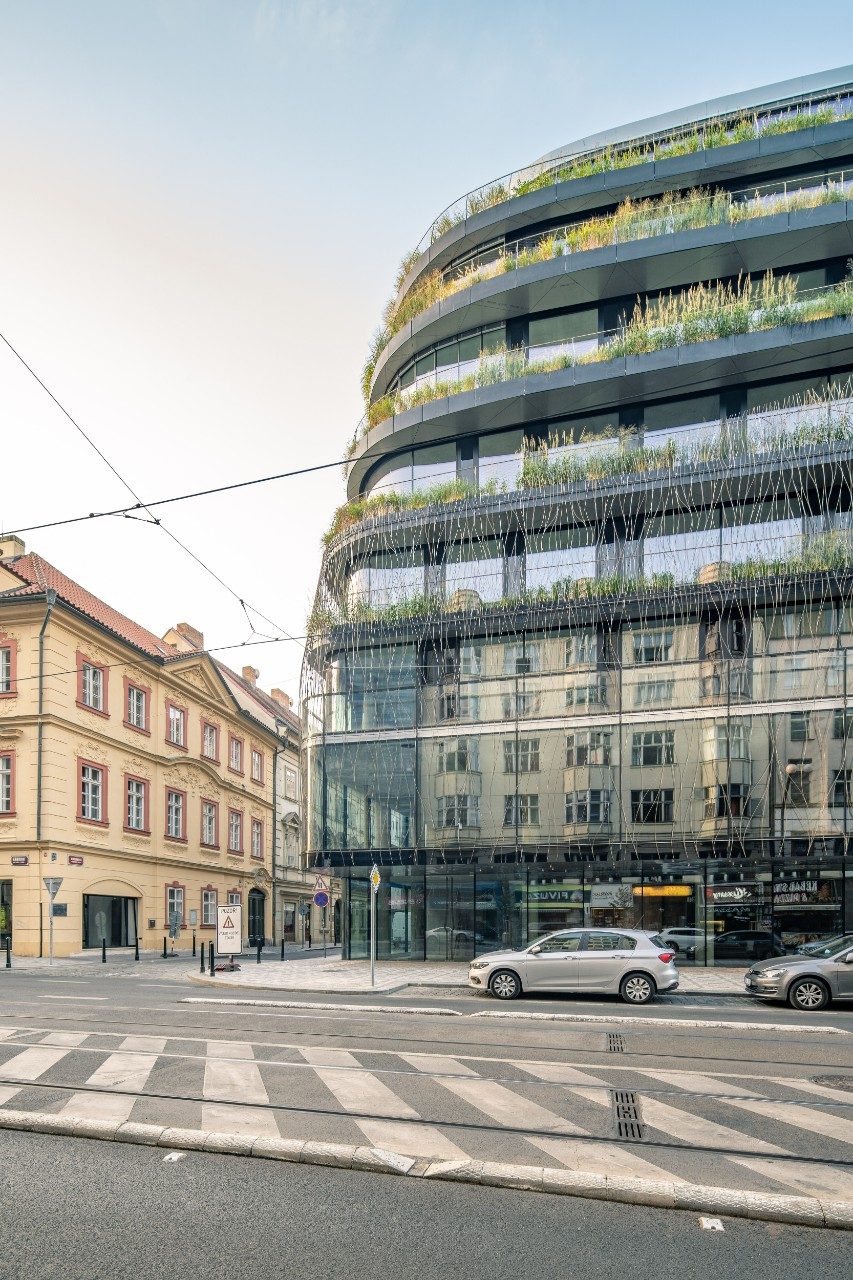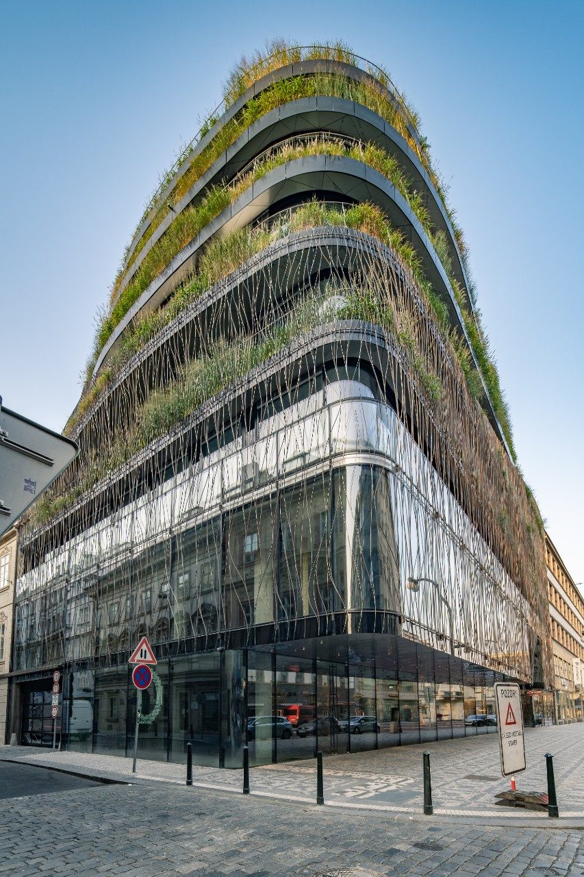 Das von Fiala Němec Architects entworfene Národní Palace ist ein Mehrzweck-Bürogebäude im historischen Zentrum der Stadt Prag. Aufgrund seines einzigartigen Aussehens mit einem grünen Dach und grasbewachsenen Balkonen wird das Gebäude von Stadtbewohnern oft als „Turf“ bezeichnet.