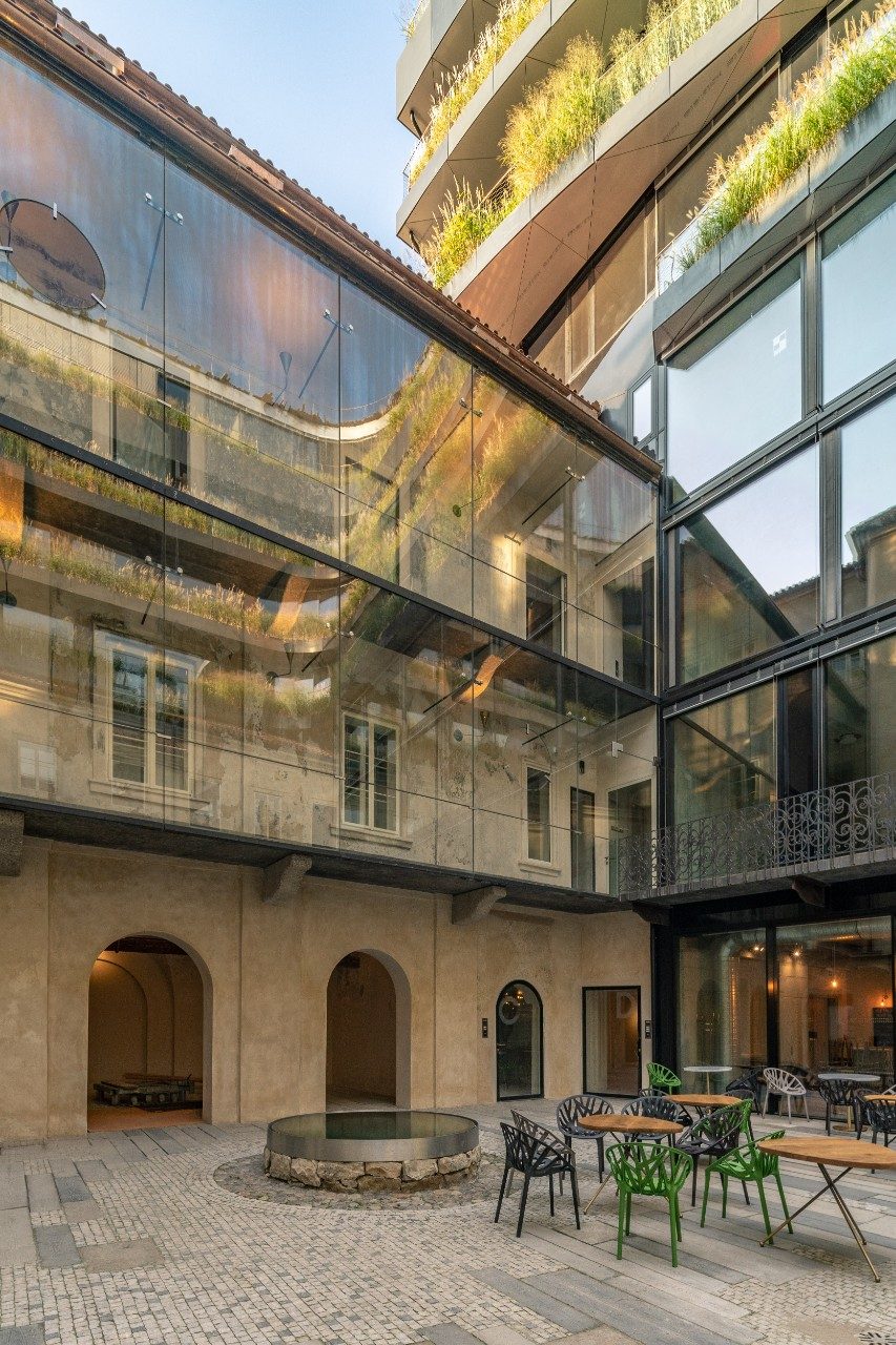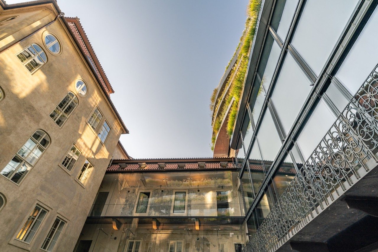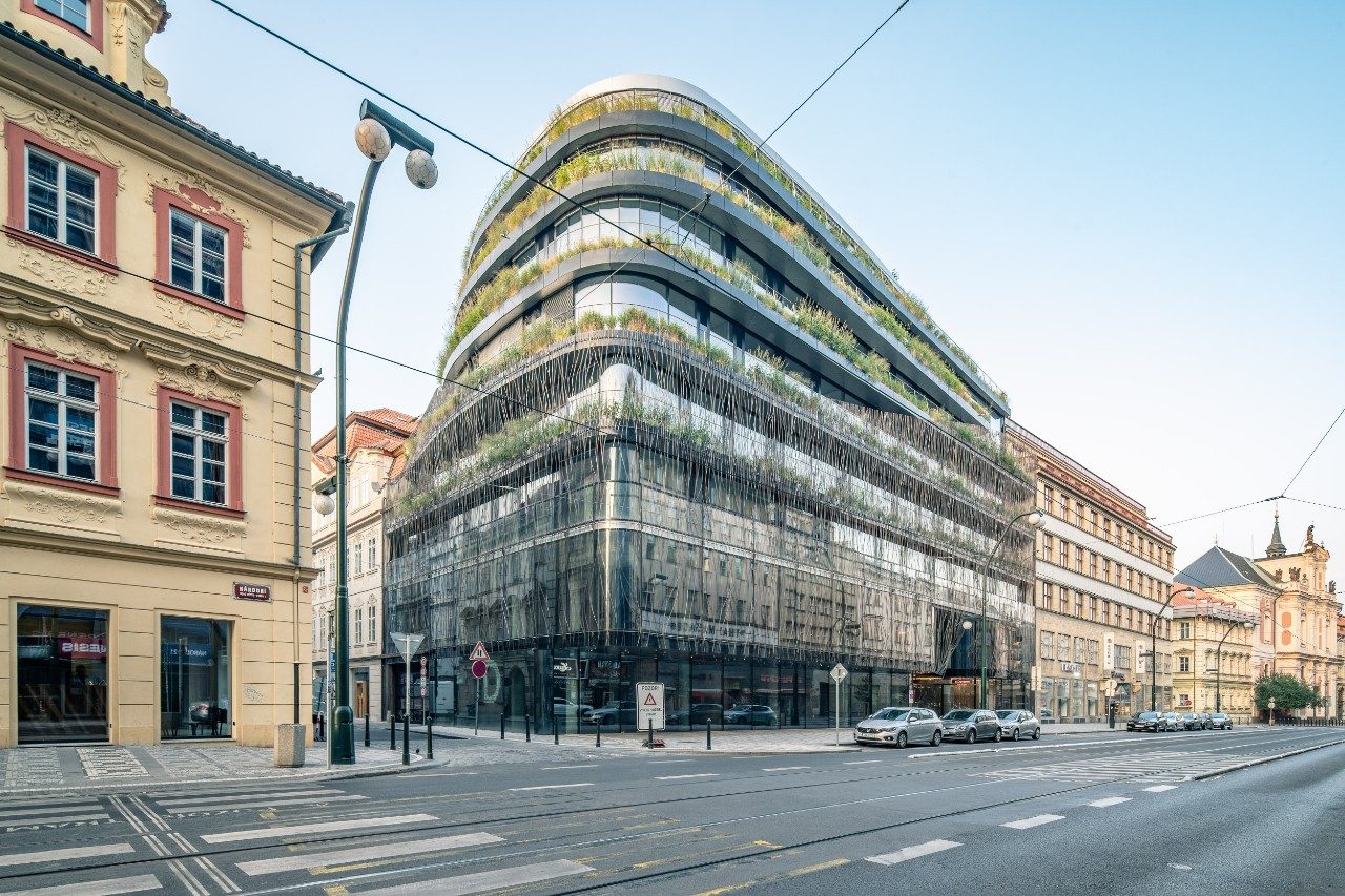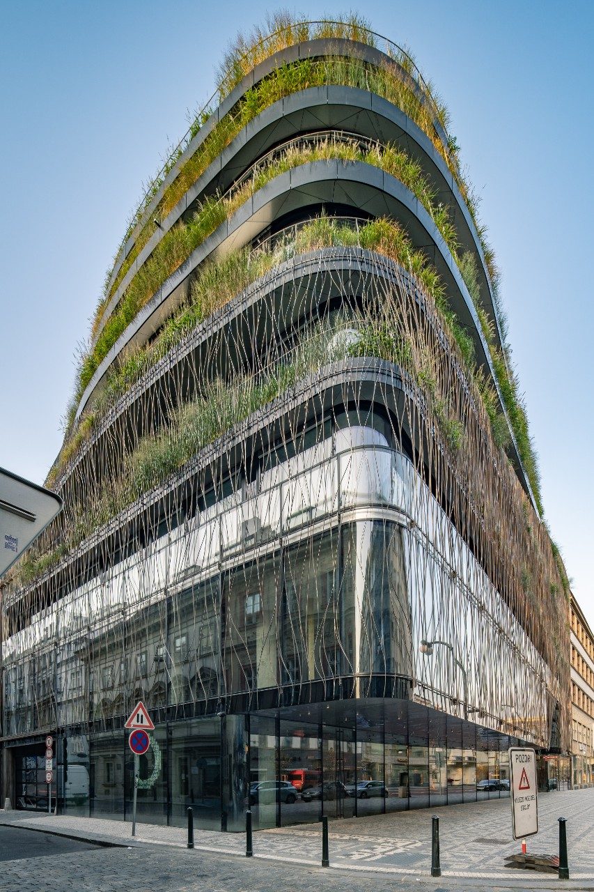 Das von Fiala Němec Architects entworfene Národní Palace ist ein Mehrzweck-Bürogebäude im historischen Zentrum der Stadt Prag. Aufgrund seines einzigartigen Aussehens mit einem grünen Dach und grasbewachsenen Balkonen wird das Gebäude von Stadtbewohnern oft als „Turf“ bezeichnet.