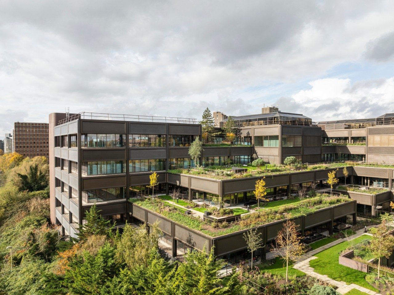 United States | February 17, 2025The refurbished Mountbatten House (now called PLANT Basingstoke) offers a stylish, wellness-centered space suited to the contemporary workforce of Basingstoke, Hampshire, UK. Cited as one of the 15 most important modern buildings in the UK, the Grade II-Listed1 1970s office complex is known for its dramatic rooftop gardens, fondly called “the Hanging Gardens of Basingstoke.” The building’s landscape and garden terraces were awarded Grade II status by English Heritage in 2015.