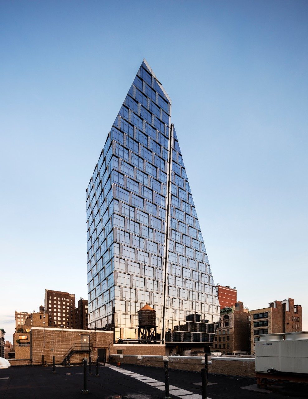 347-foot, 170,000 square foot mixed-use building in Manhattan. The lower six stories provide classrooms and a half-court gym for a private high-school and luxury residences occupy the upper floors. The geometry of the tower façade uses a sophisticated unitized curtain wall fabricated in Europe with SunGuard® Neutral 41/33 high performance glass helping the building achieve LEED® Silver certification.