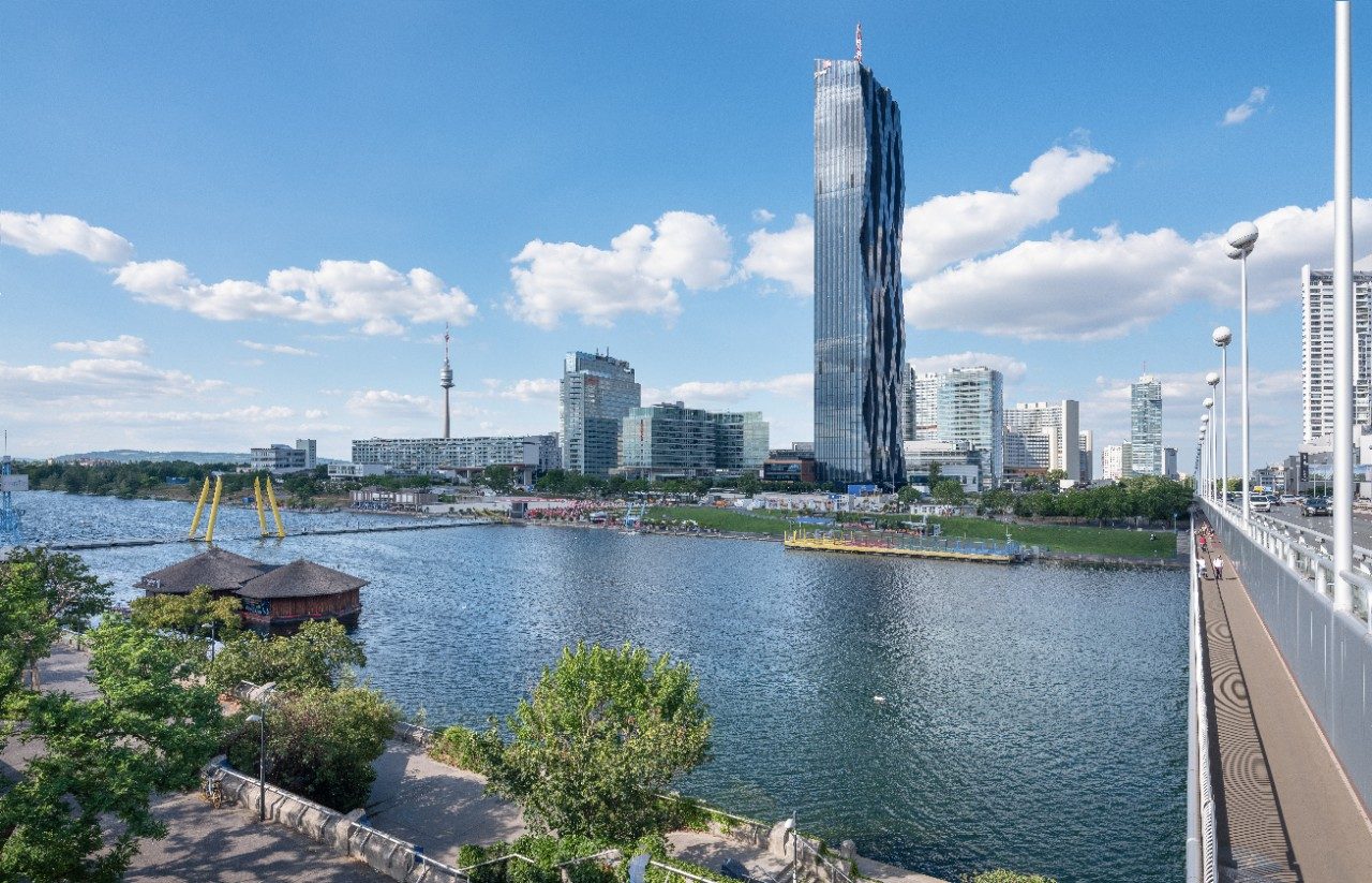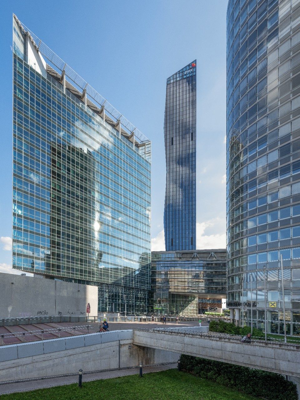 Diseñado por Dominique Perrault, el proyecto de la Torre 1 de las Torres Donau City (DC) es un edificio destacado del perfil de Viena y representa el rascacielos más alto de Austria. El proyecto DC constará de tres torres en total, dos de las cuales aún se encuentran en construcción.
