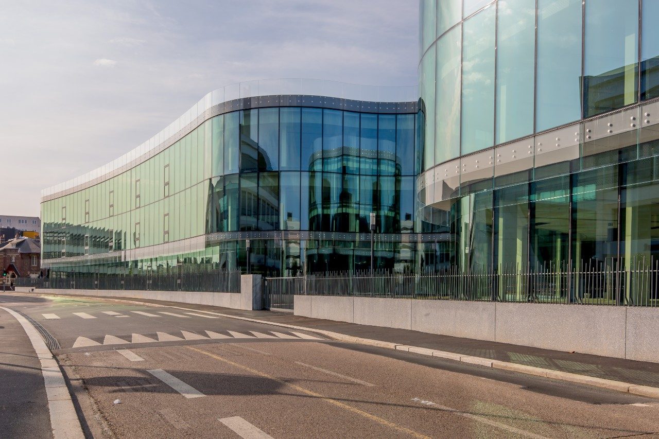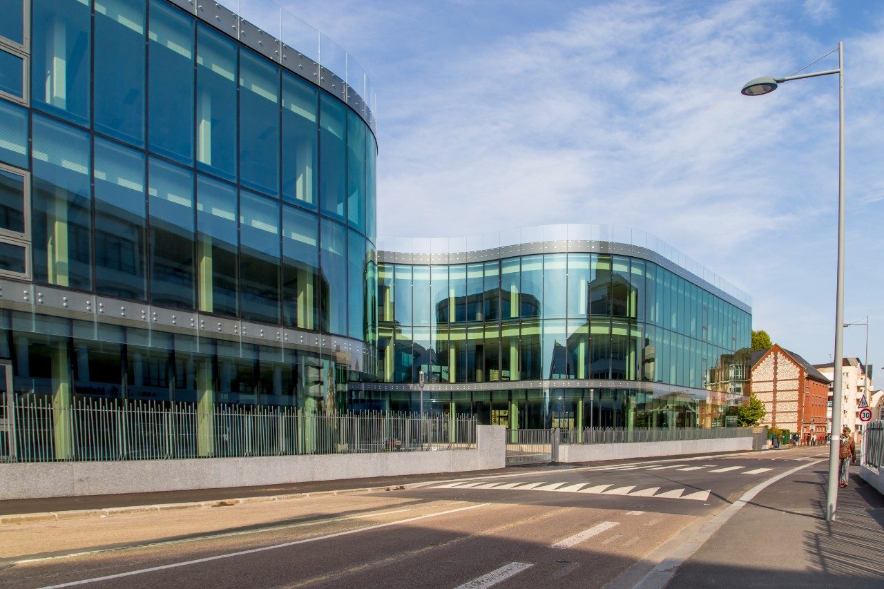 A La Filature modern, energiatakarékos irodaépülete a Matmut biztosító székházával szemben található a franciaországi Rouenben.