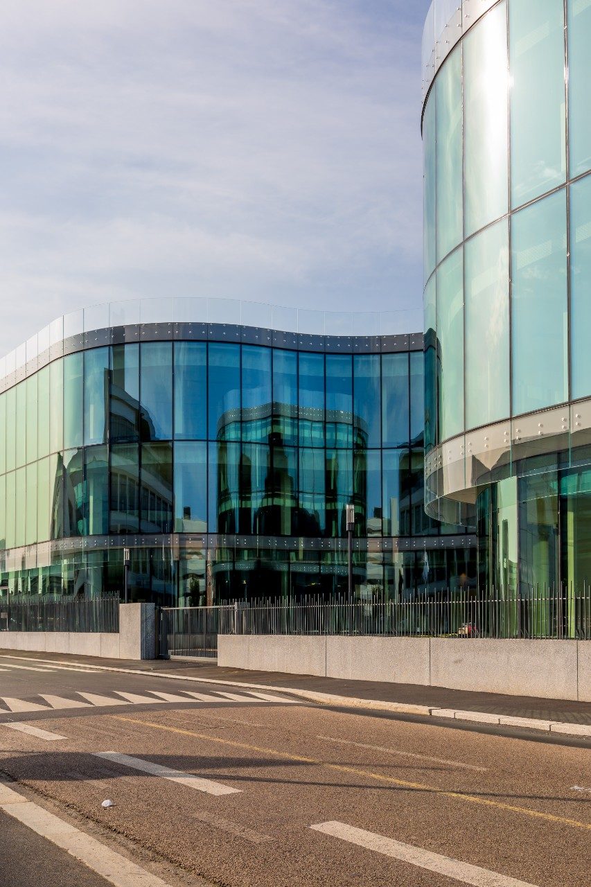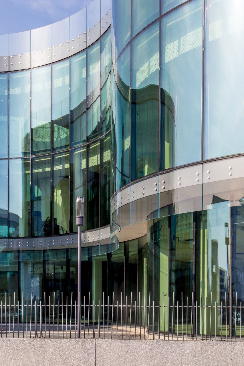 Az ötletes strukturális üvegezésnek köszönhetően az épület esztétikus megjelenésű, és minden oldala visszatükrözi a környezetét.