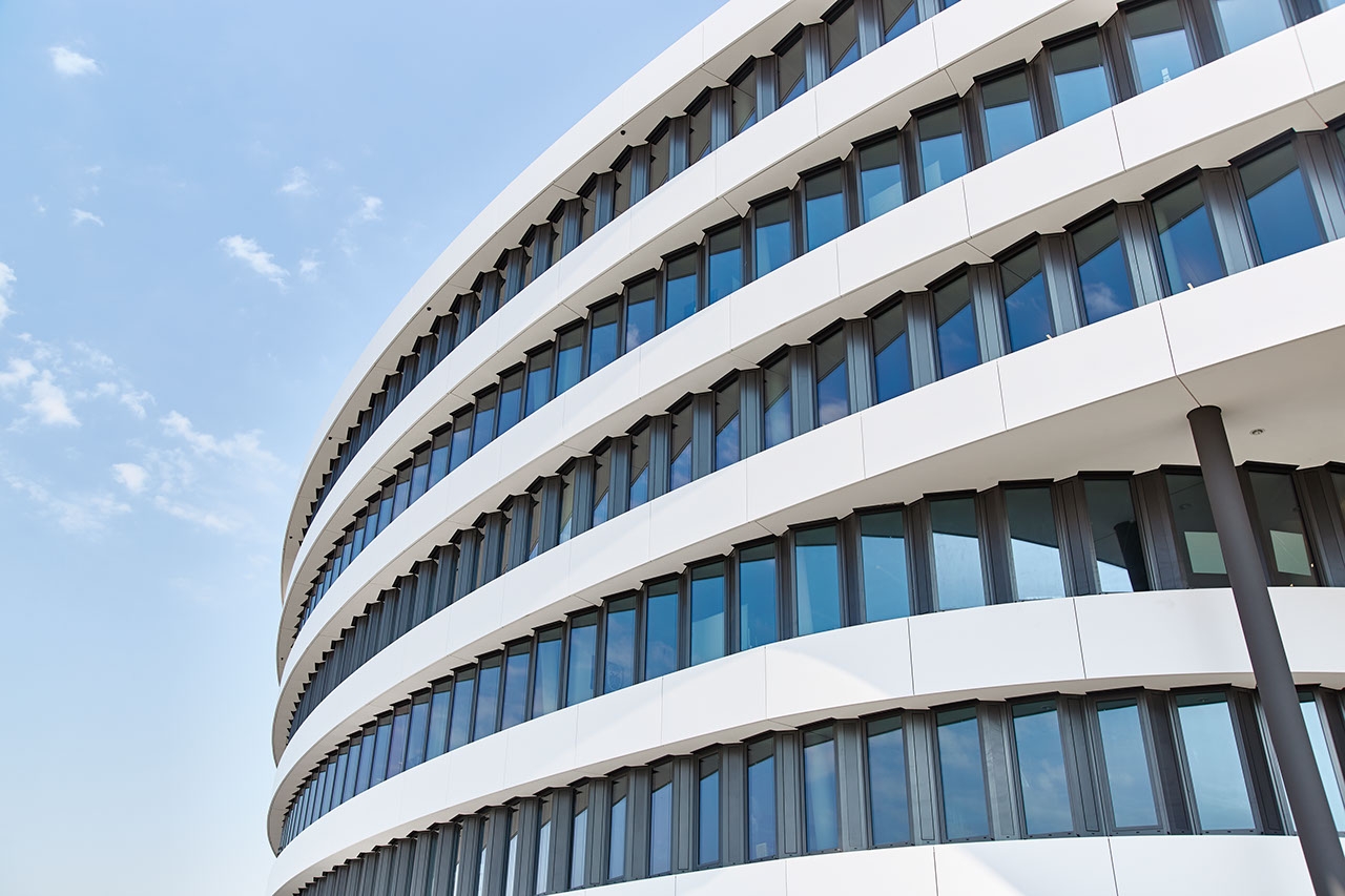 Dzięki sprytnemu szkleniu strukturalnemu estetyka przyciąga wzrok i odzwierciedla otoczenie budynku z każdej strony.
