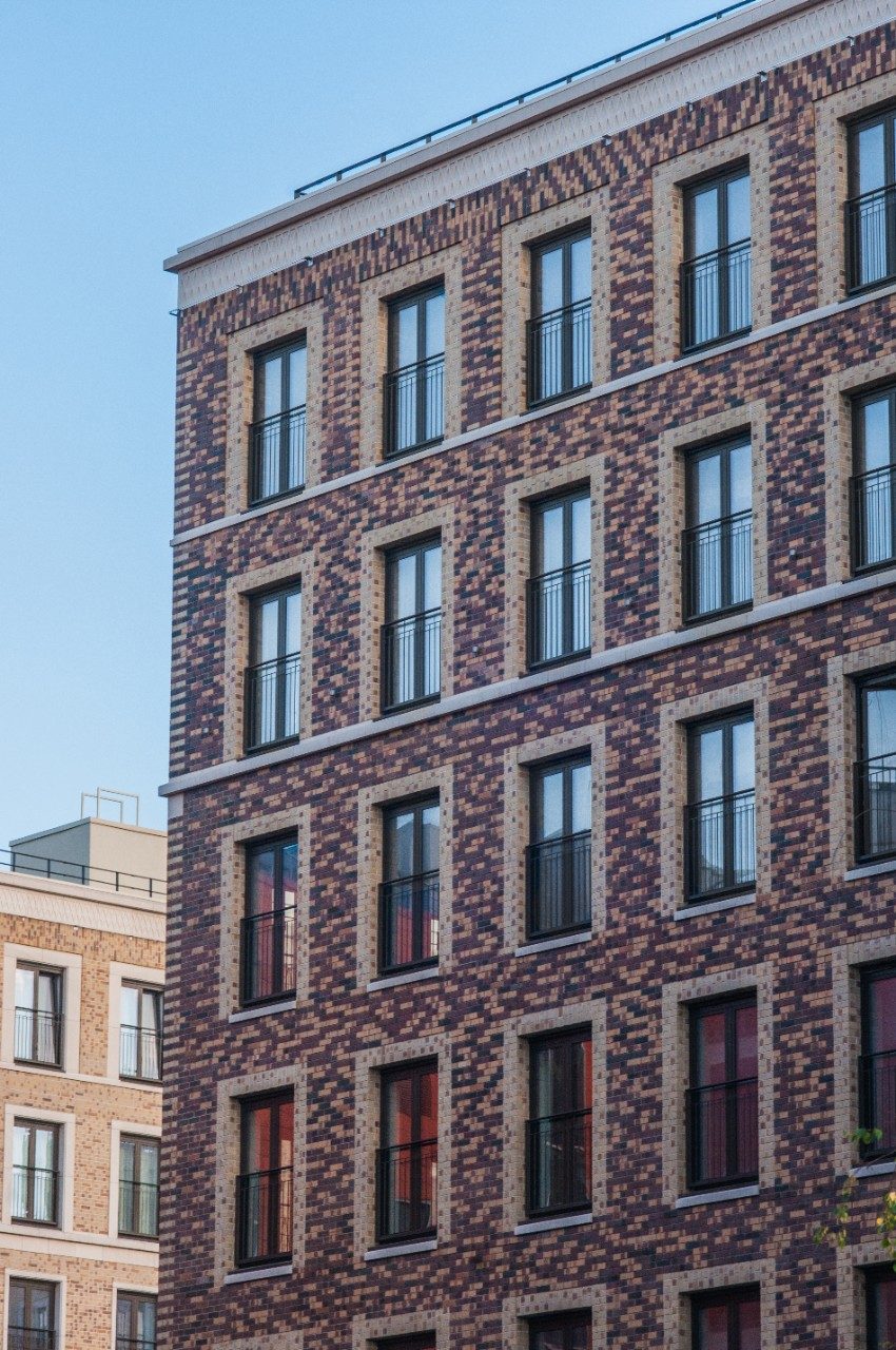 Uma característica muito peculiar do quarteirão é a combinação de varandas francesas e janelas panorâmicas do chão ao teto. As IGU com redução de ruído estão equipadas com vidro multifunções Guardian SunGuard® Neutral 70 HT, de cor neutra e refletividade média. Proporciona uma combinação perfeita de transparência, eficiência energética e proteção solar.