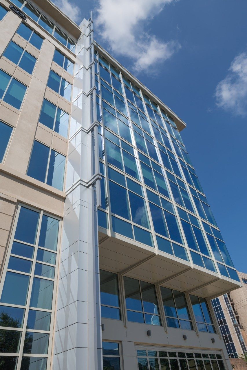 Спроєктована компанією BB+M Architecture, офісно-торговельна будівля 500 East Morehead площею 16 723 кв. м зведена в передмісті Шарлотт у Північній Кароліні з використанням прозорого покращеного архітектурно-будівельного скла із покриттям SunGuard® SNR 43 .