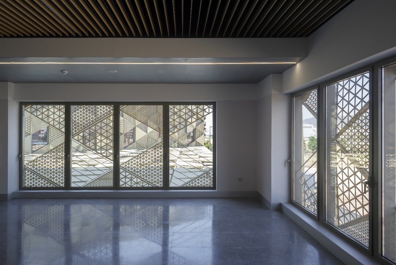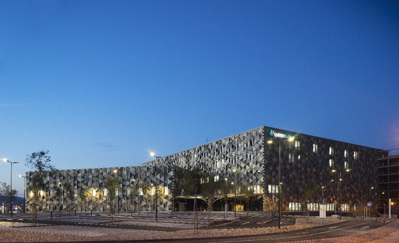 Кліника Clinica Quirón у Кордові, спроєктована Enero Arquitectura, є унікальним сучасним об’єктом архітектури, який забезпечує максимально ефективне використання денного світла. Яскравий фасад прикрашає металева решітка з алюмінію та скла, яка накриває будівлю та пропускає світло. Екстер’єр складається з трикутної алюмінієвої решітки золотистого й бронзового кольорів, відтінки яких змінюються залежно від кута падіння сонячних променів, які відбиваються в ній. Скло для фасаду було ретельно підібрано відповідно до кольорів і відтінків решітчастої конструкції.