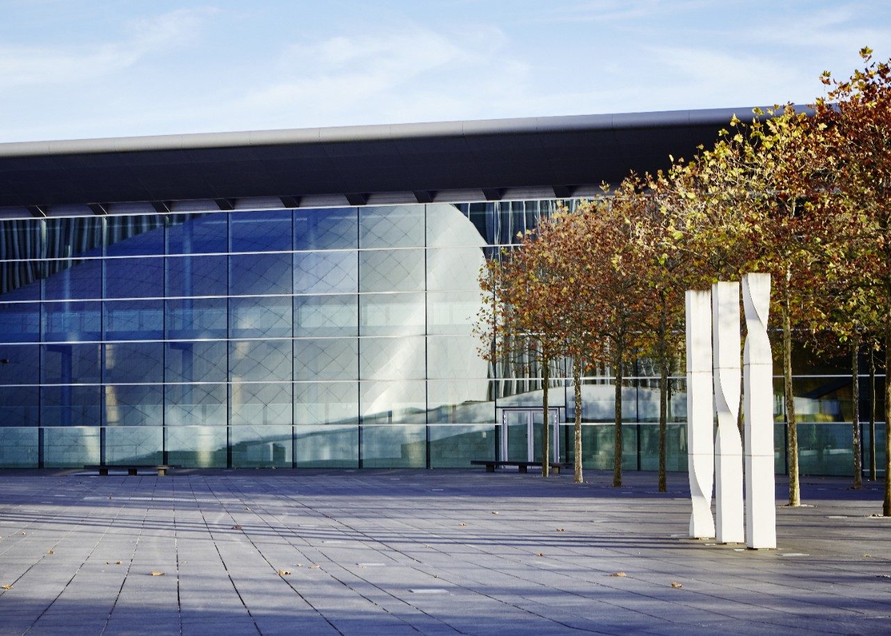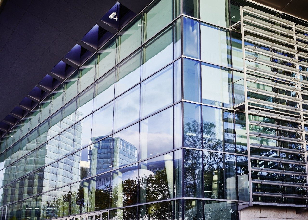 Квадратний засклений фасад довжиною 300 м має зменшений профіль і послідовно розташовані внутрішні структури, які дозволяють стежити за переміщенням відвідувачів удень і вночі. Велике панорамне вікно в підлогу з гнутим склінням відмінно пропускає денне світло й дає змогу насолоджуватися природою. Для скління фасаду будівлі було вибрано сонцезахисне скло з напиленням Guardian SunGuard® SuperNeutral (SN) 62/34. Це сонцезахисне скло має високий рівень пропускання природного світла та мінімізує потребу в штучному освітленні, забезпечуючи чудовий захист від сонячного світла та виняткову теплоізоляцію. Guardian SN 62/34 — сонцезахисне скло з двошаровим сріблястим напиленням нейтрального світло-сірого кольору, що згодом було замінено на Guardian SunGuard® SN 63.