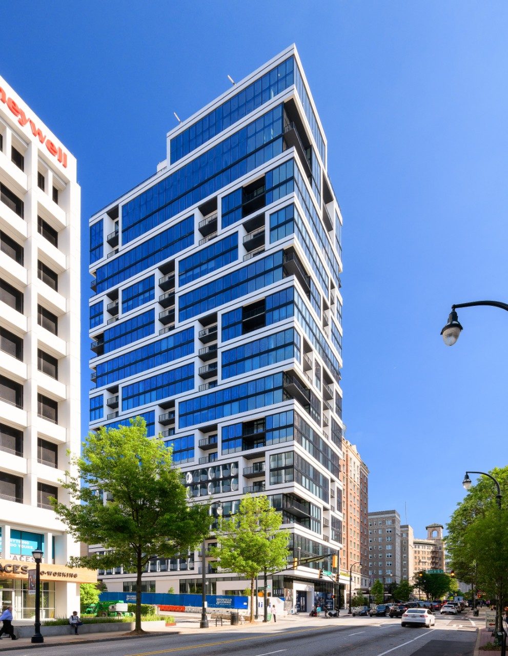 Lilli Midtown — 24-поверховий висотний житловий будинок у житловій частині центру Атланти на 147 помешкань. Компанія ODA, що проєктувала будівлю, вирішила поєднати масивні геометричні форми з прозорим покращеним архітектурно-будівельним склом, вкритим матеріалом SunGuard® AG 43 , щоб гарно вписати будівлю в ландшафт Атланти.