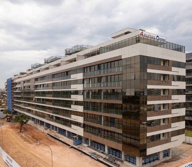 Parque das Gardenias — це елегантний житловий комплекс, розташований у північно-західному районі федерального округу Бразилії, оточений парками, неподалік від центру міста. Для скління фасаду було використано ламіноване скло SunGuard™ Solar Amber і SunGuard HP Neutral 70 , що забезпечує захист від сонячного світла (сонячний фактор становить 62 %) і комфорт для зору мешканців завдяки властивості зменшувати відблиски (пропускання світла становить 35 %).