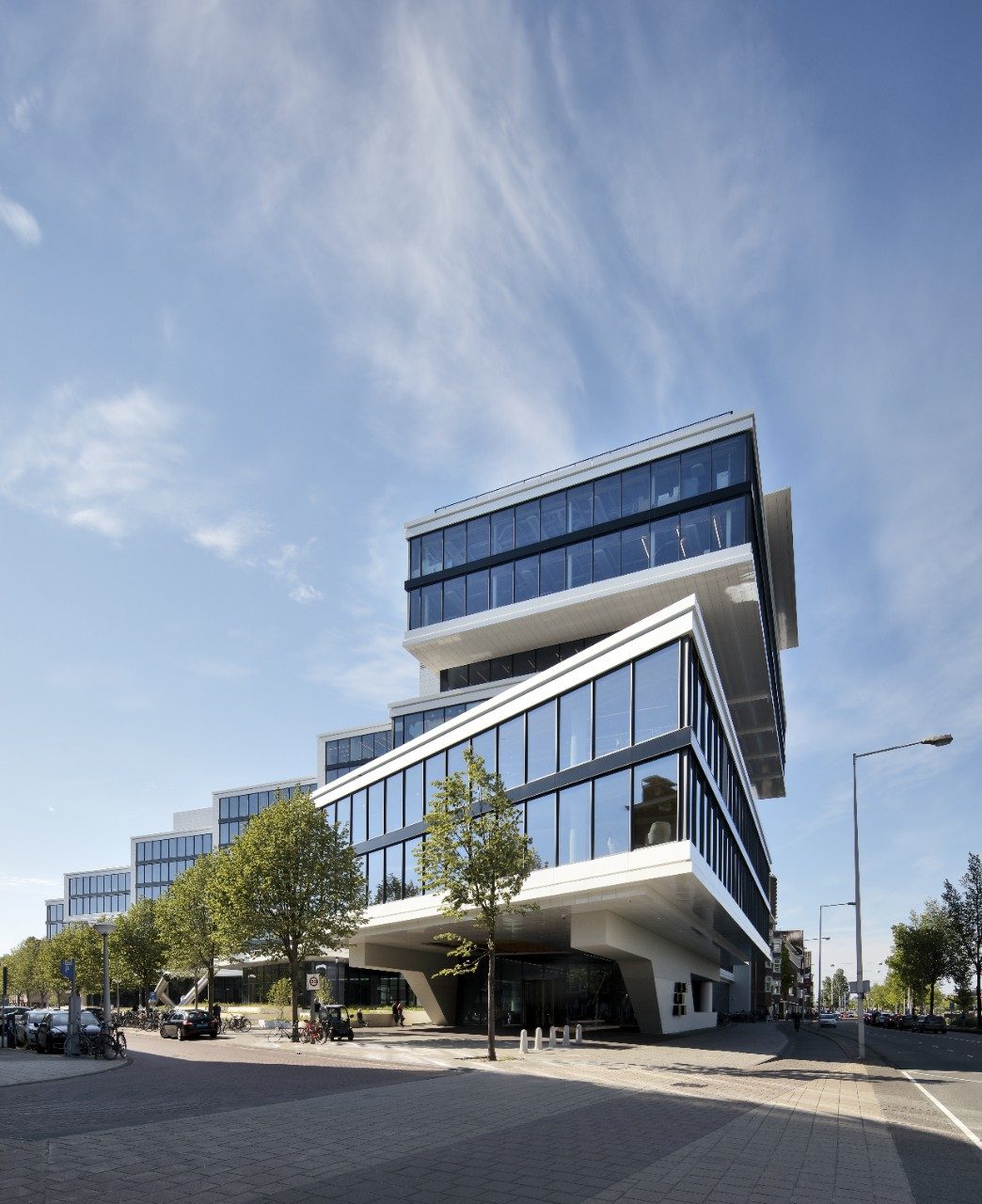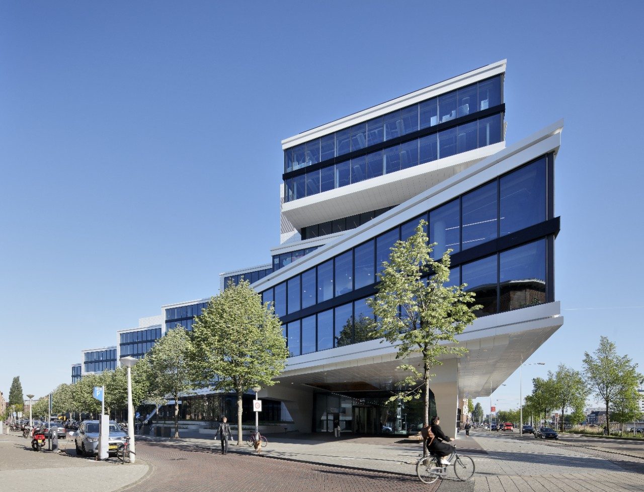 Побудована в 1973 р., будівля Amsteldok, раніше відома як Rivierstaete, є багатофункціональним об’єктом в Амстердамі. У 2013 р. будівля здебільшого пустувала й виглядала застарілою. У межах проєкту реконструкції MVSA Architects архітектори вдало інтегрували будівлю в навколишнє середовище. Восьмиповерхову конструкцію Rivierstaete спочатку покрили мільйонами білих плиток, а вікна були відносно вузькими. Їх замінив скляний фасад від підлоги до стелі. Відкритий засклений фасад створює приємне здорове робоче середовище з більшою кількістю природного денного світла для мешканців будівлі всередині й водночас дозволяє зазирнути всередину, ніби поєднуючи ці два світи. Для скління фасаду будівлі було вибрано сонцезахисне скло Guardian SunGuard® SuperNeutral (SN) 40/23 і SN 62/34. Це подвійне скло зі сріблястим напиленням має високий рівень пропускання природного світла та мінімізує потребу в штучному освітленні, забезпечуючи чудовий захист від сонячного світла й теплоізоляцію. Скло SN 40/23 має вишуканий нейтральний колір у відображенні та на просвіт. Скло SN 62/34 має нейтральний світло-сірий колір зовні. Матеріал було замінено на Guardian SunGuard® SN 63.