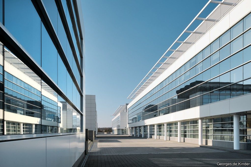 Для скління фасадів було використано Guardian SunGuard® High Performance (HP) Silver 35/26. HP Solar Silver 10 було вибрано для непрозорих зон, що забезпечило однорідний зовнішній вигляд будівель. Високоефективне сонцезахисне скло має вишуканий сріблястий відблиск ззовні й високий рівень теплоізоляції, а також надійно захищає від сонця. Завдяки високій енергоефективності лінійка SunGuard High Performance є ідеальним варіантом для різних кліматичних умов, у яких, зокрема, необхідне кондиціонування повітря та дотримання або навіть перевищення норм у сфері енергетичної ефективності.