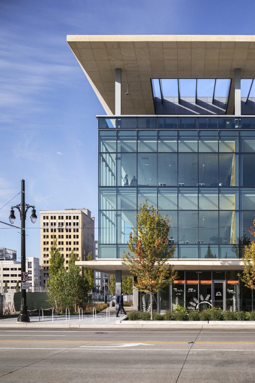 Нова будівля Університету Вейна з використанням скла і різких ліній висловлює сучасні ідеали, просуваючи величні і видатні традиції бізнес-освіти. Головний фасад уздовж Вудворд-авеню представлений елегантним безрамним склінням — навісні фасади з прозорого скла SunGuard® SNX 62/27 дають змогу зазирнути в аудиторії чи побачити з них навколишній світ.