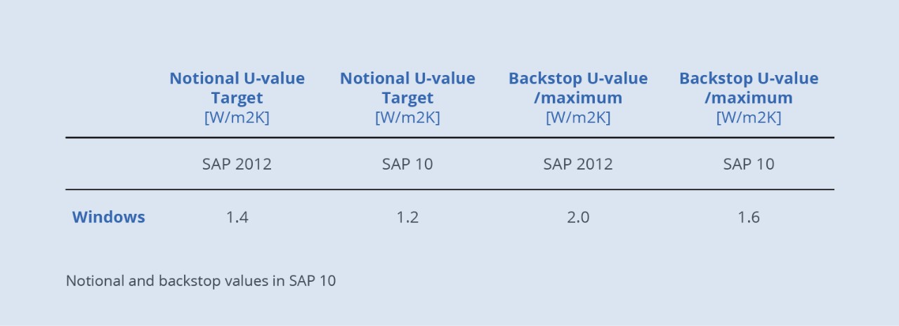 The 2021 edition of Approved Document L, Volume 1, introduces new minimum efficiency standards (backstop values) for both new and replacement thermal elements, windows and doors. New build schemes will be assessed under the new SAP 10 (Standard Assessment Procedure) method. Most types of new window, including roof windows and glazed doors, must now achieve an improved U-value of 1.6 W/m2K compared to 2.0 W/m2K previously. However, the U-value of the glass will have to be much lower than this to enable a new dwelling to achieve its targets for primary energy, carbon emissions and fabric energy efficiency rates.