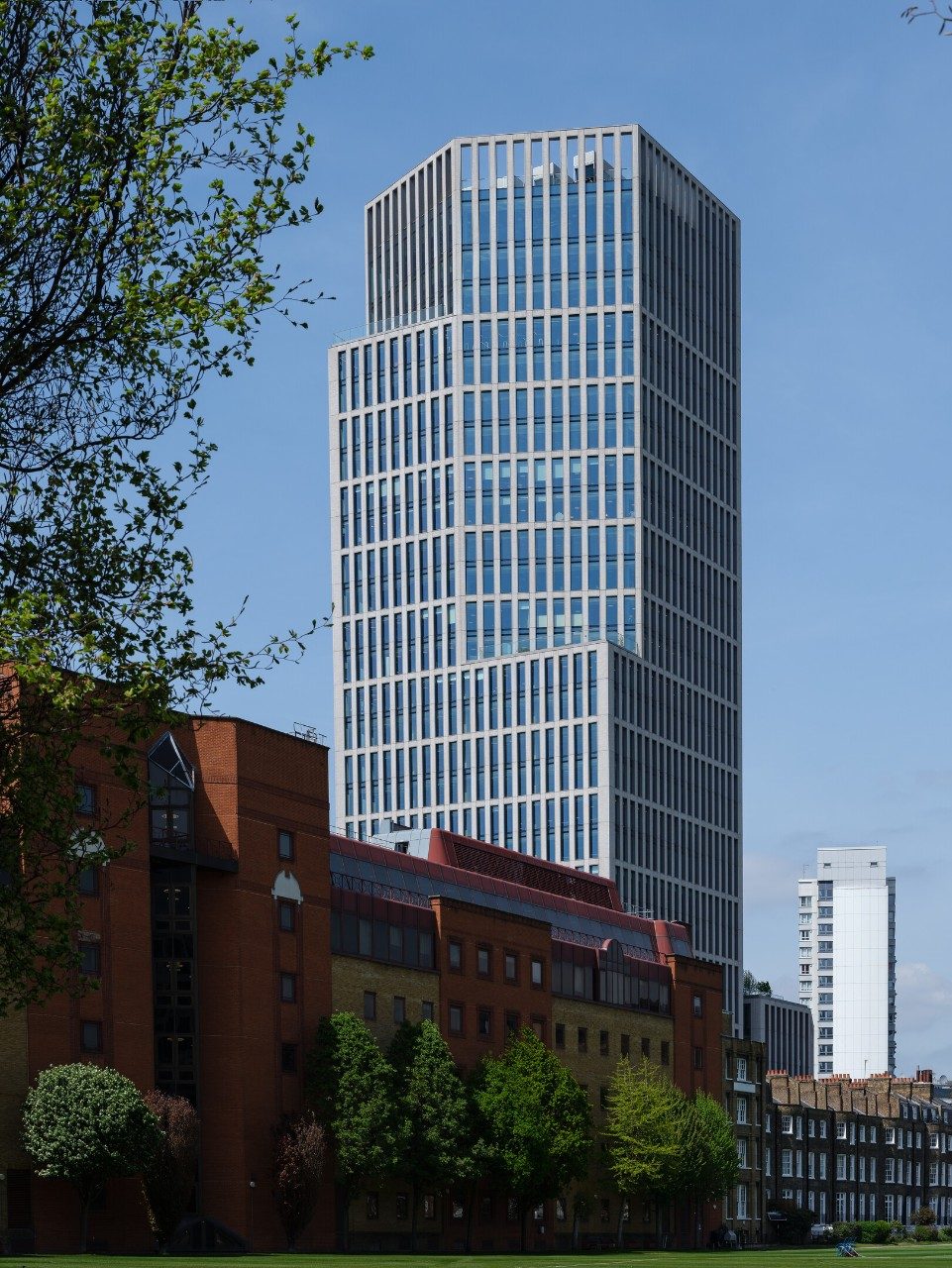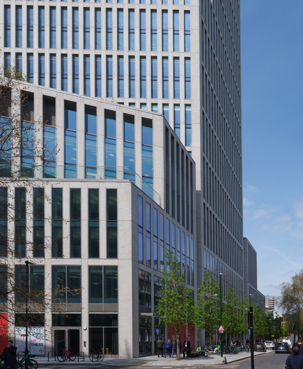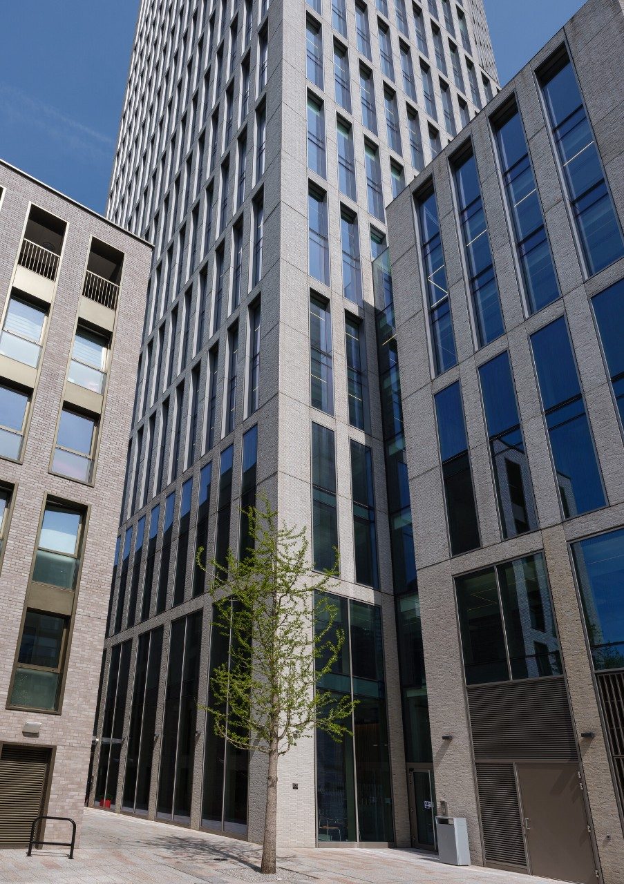 Our glass products have been instrumental in shaping the HYLO Tower's distinctive design. Located in the lively borough of Islington, the tower's glass façades harmoniously integrate with the heritage brick and concrete cladding, showcasing a blend of modern and traditional elements. Our SunGuard® SN 70/35 coated glass, crafted for durability and aesthetic quality helped enhance the building's appearance. The light-filled interiors created by our glass help foster an inspiring workspace that encourages creativity and connection among occupants with the vibrant London cityscape. The Finsbury Tower – HYLO Building project has proudly received both the WELL Gold and BREEAM Excellent certifications.