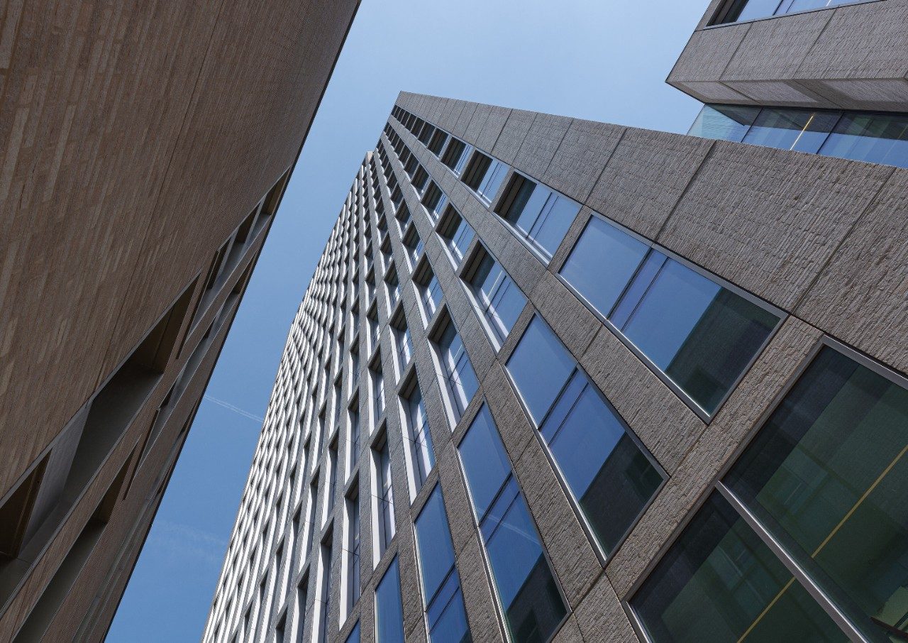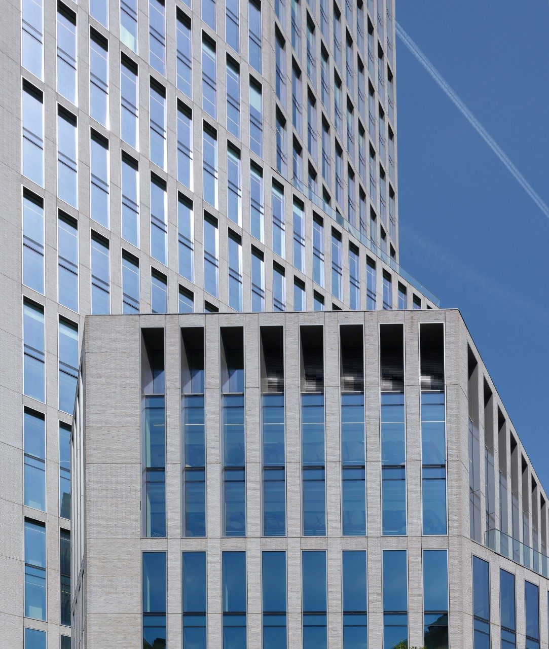 The 75,000 square metres façade features a curtain wall that is double glazed to allow for a high solar protection on neutral-looking glass.