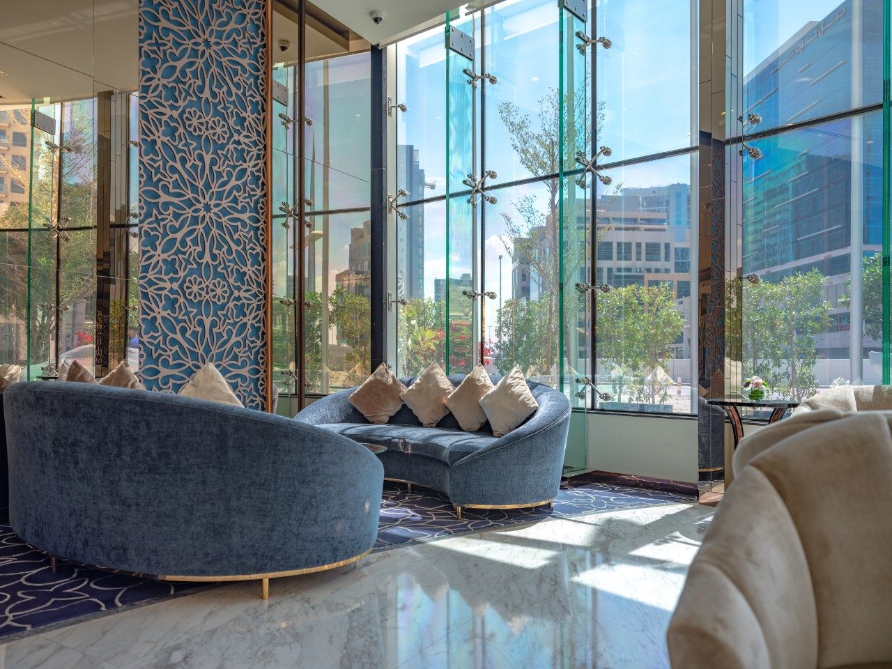 Its sleek exterior showcases a distinctive blue-green appearance, achieved with Guardian SunGuard™ HP Aquamarine 40 coated glass, now upgraded to SunGuard™ DS Aquamarine T coated glass. This advanced glazing combines aesthetic appeal with solar control and energy performance, complementing the tower’s modern architecture and prime location.