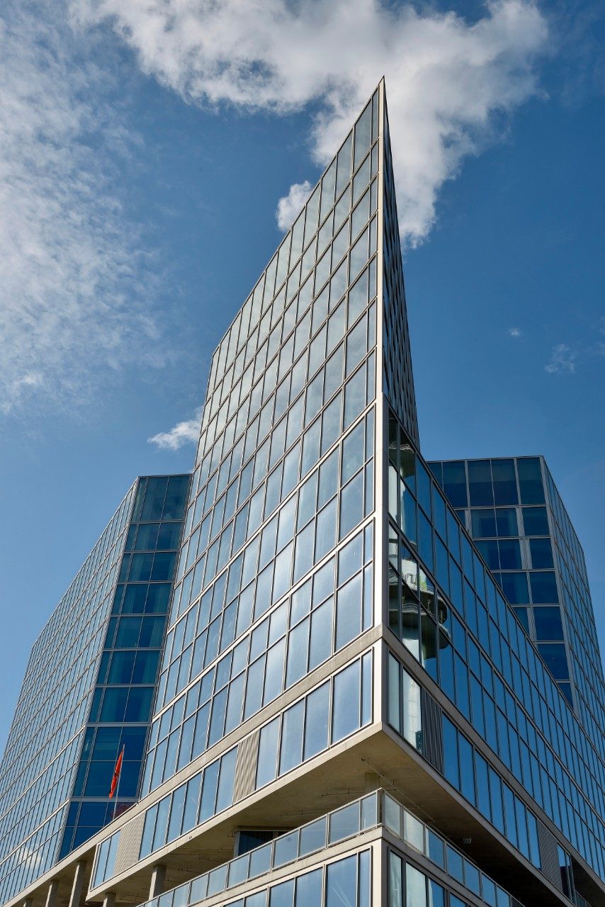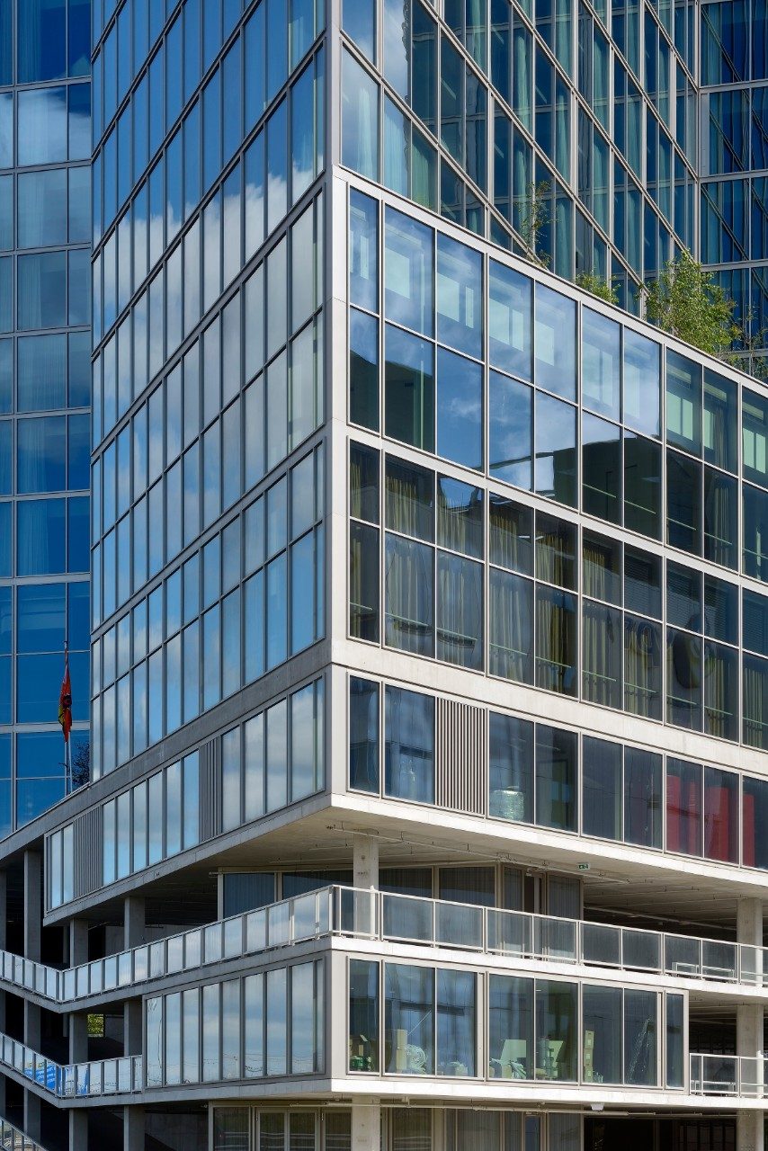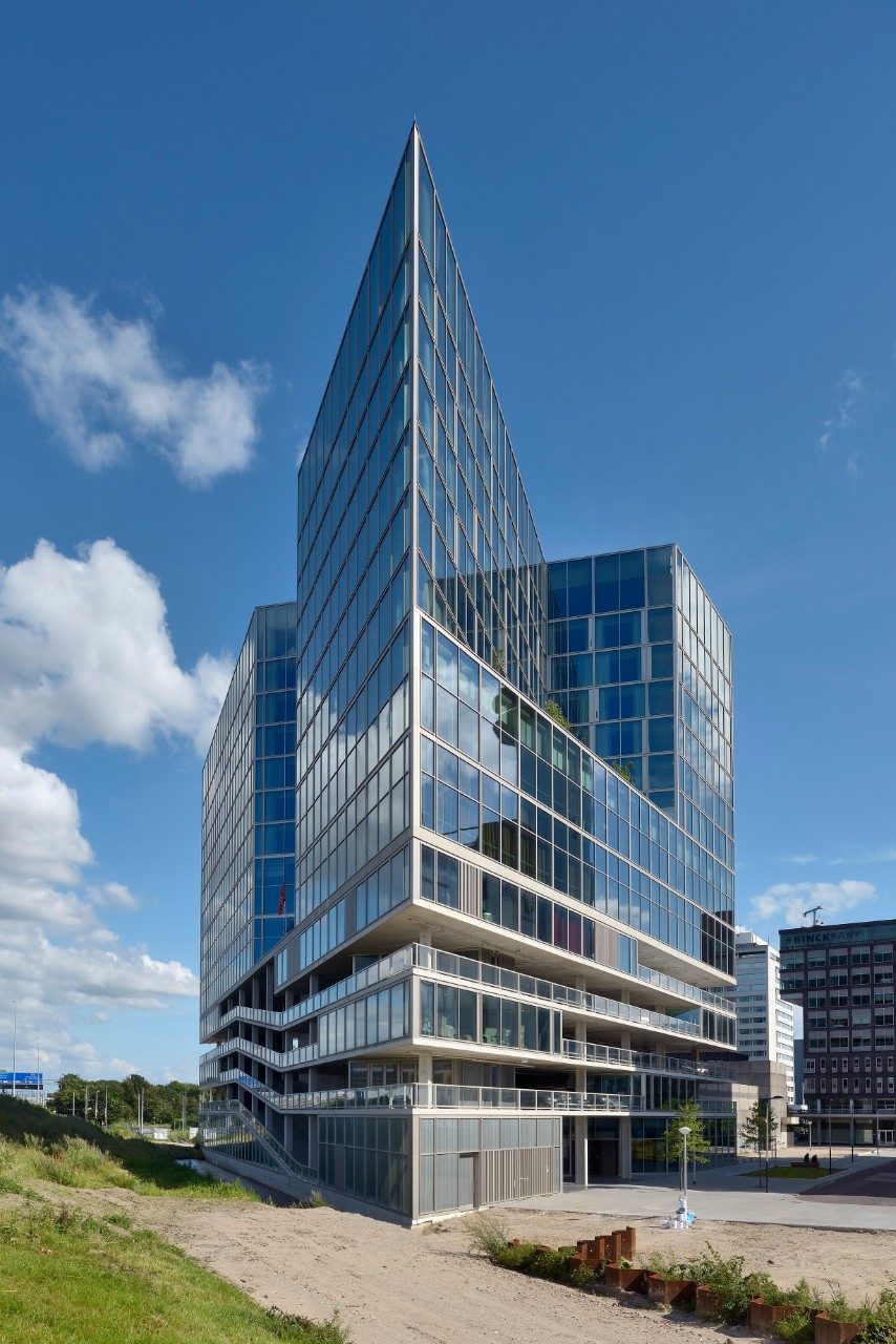 The Van der Valk hotel in Amsterdam’s Zuidas district was designed by Wiel Arets Architects, who gave the building a unique, clean, sharp look. The architecture is characterised by a homogeneity to all the façades. The large windows create an open, transparent building that blends in with its surroundings. The hotel also achieved a BREEAM-NL Excellent rating.