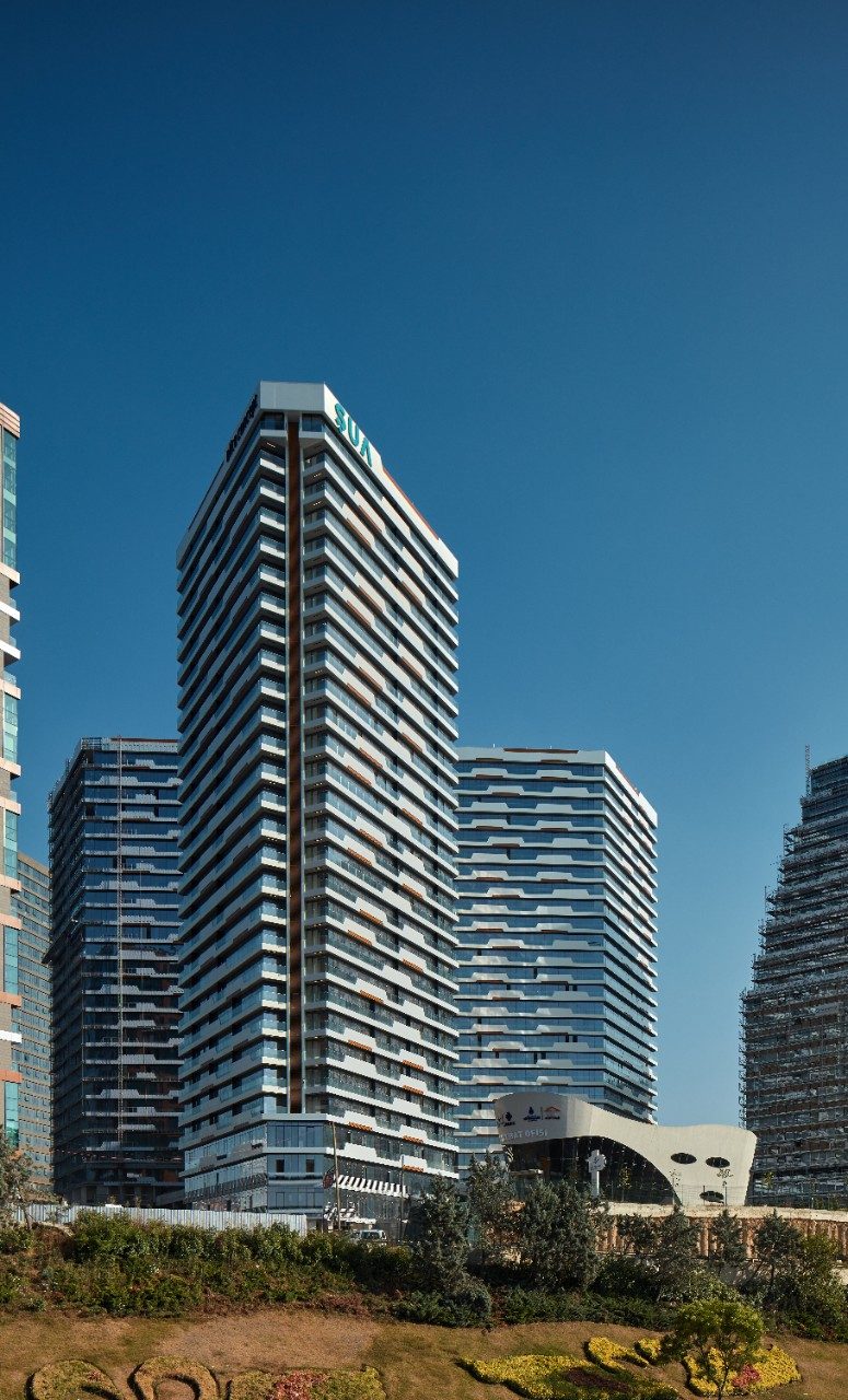 Right in the heart of the city but away from the noise, Maslak 1453 offers a fairy-tale-like world. The project, designed by Atelier T, includes a strong, blue accent rising straight in the centre of the green natural surroundings. Guardian SunGuard® Solar Royal Blue 20 and SunGuard® SuperNeutral 29/18 coated glass products were selected for the facade design.