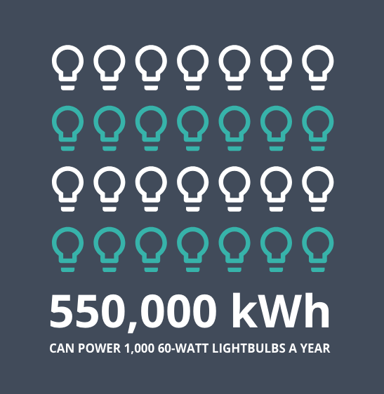 • Replaced a total of 630 warehouse roof lamps with high-efficiency LED fixtures. The new LED fixtures have reduced energy use for lighting by approximately 55% at each site, totaling over 1,200,000 kWh in annual energy savings for both locations.