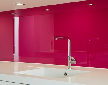 A splash of water. Food splatter. Scuffs. These are just a few enemies of clean bathroom and kitchen walls. Glass can be used for splash backs in residential kitchens and bathrooms, providing easy-to-clean surfaces behind ovens, stoves, washbasins and other work surfaces. Available in a variety of colors and options, glass splash backs are an ever-growing design trend that make life easier.