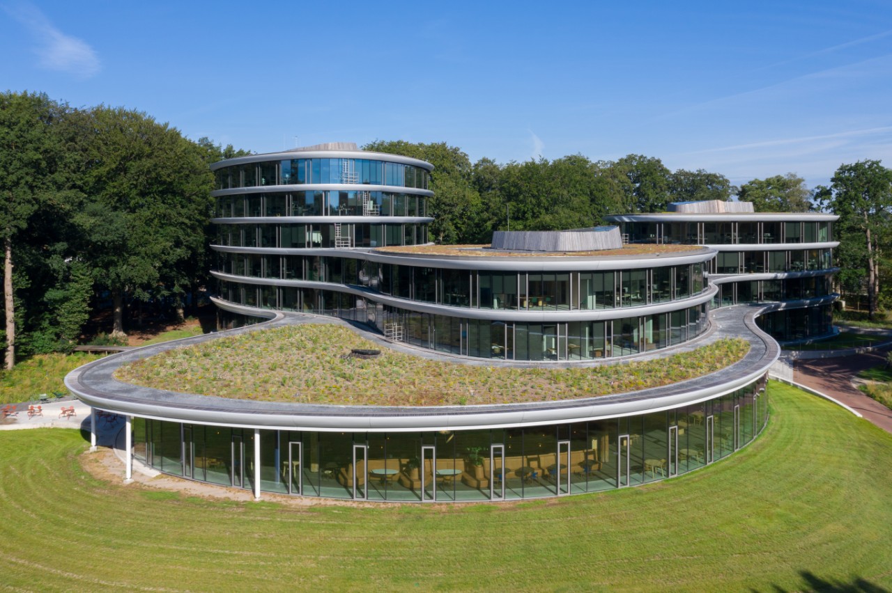 La fachada alrededor del edificio está hecha completamente de vidrio, de modo que los lugares de trabajo de los empleados de Triodos Bank están expuestos a mucha luz natural y se encuentran fuertemente conectados con el área circundante. Los tres núcleos, los pisos y las cerchas son de madera, lo que da al edificio un aspecto natural El edificio fue galardonado con el premio Edificio de oficinas del año en los premios Architectenweb 2019.