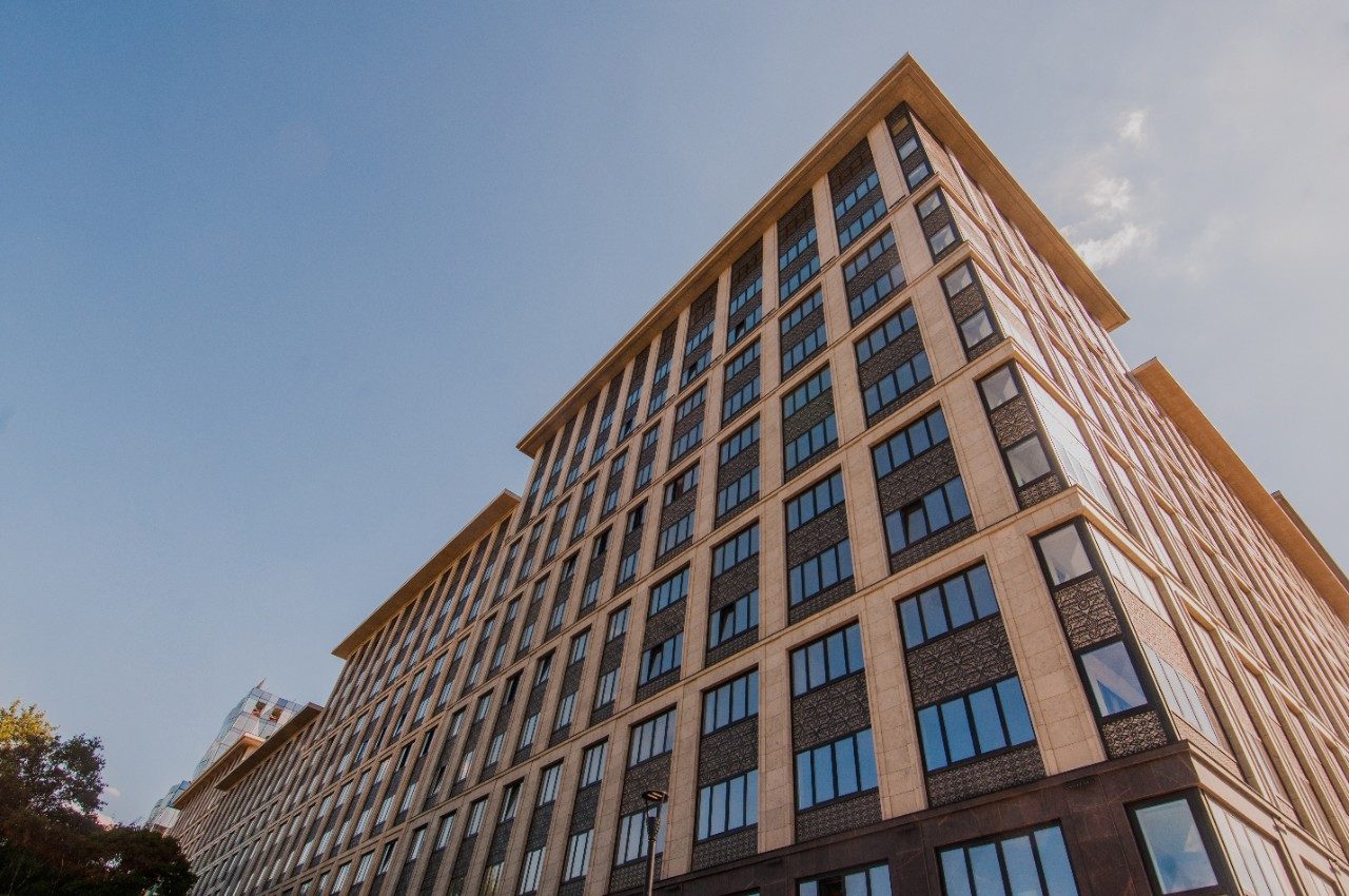 As janelas dos apartamentos de classe executiva no complexo residencial Iskra-Park oferecem vistas panorâmicas deslumbrantes para o Petrovsky Park, o Khodynskoye Field e os arranha-céus da cidade de Moscou. O vidro arquitetônico SunGuard® Neutral 70 HT também serve como um exemplo de tecnologias inovadoras. Graças a uma camada excepcionalmente fina de metais, pulverizada na folha de vidro por deposição de magnétron, os desenvolvedores conseguiram criar um produto que combina perfeitamente neutralidade, eficiência energética e propriedades de proteção solar. O vidro SunGuard Neutral 70 HT cuida do conforto em ambientes fechados em todas as condições climáticas. O seu revestimento com eficiência energética reduz despesas de aquecimento e custos de ar condicionado; além disso, sua vitrificação moderada protege os moradores do apartamento dos olhos curiosos na rua movimentada lá fora. Certamente, não havia essas tecnologias na Moscou dos anos 30, mas os cidadãos da capital moderna podem aproveitá-las plenamente hoje.