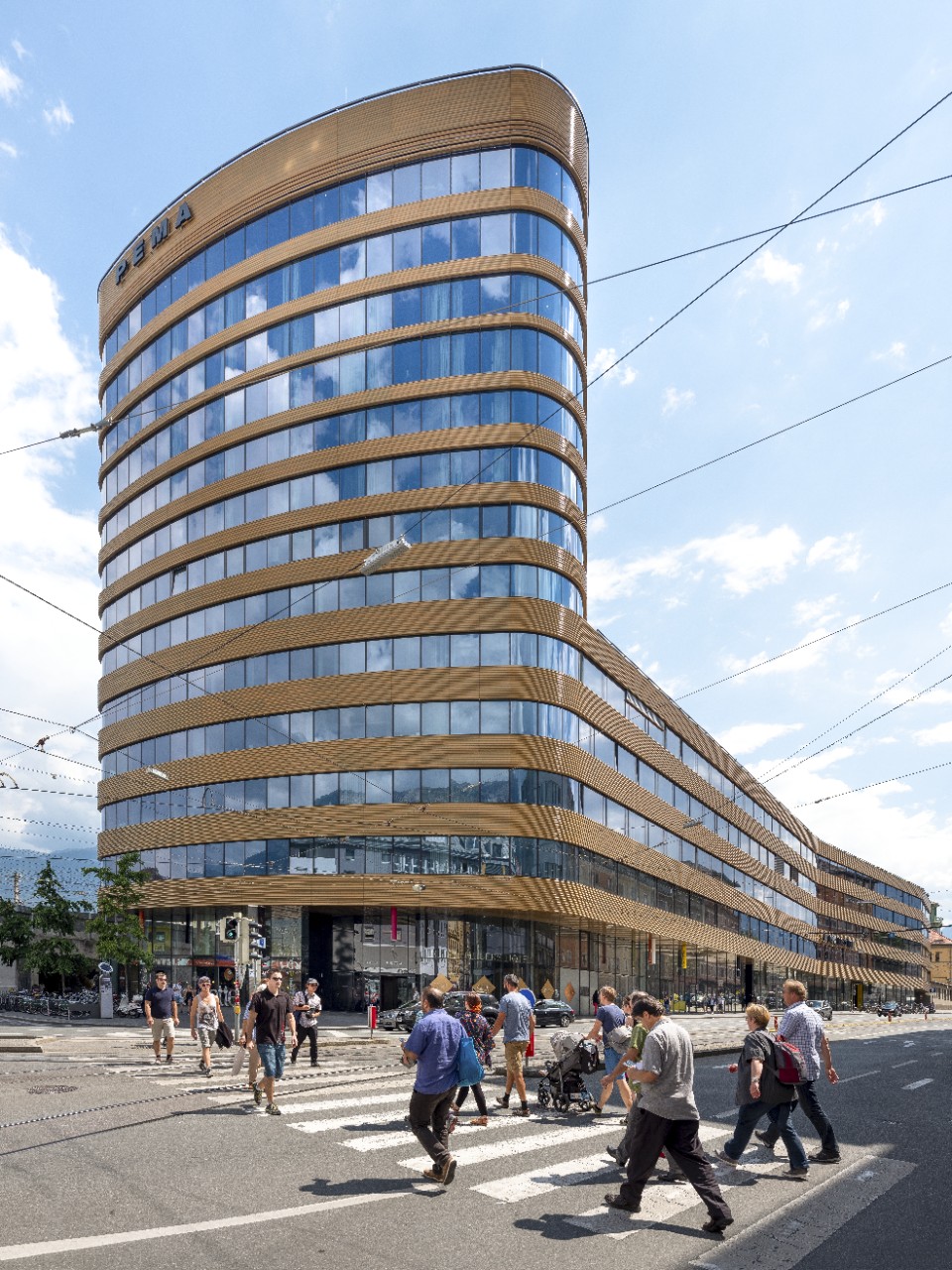 Projetado pelos arquitetos vienenses Henke e Schreieck, o “Headline” foi o primeiro edifício alto a ser construído no centro de Innsbruck desde os Jogos Olímpicos de 1976. O moderno e esteticamente agradável edifício comercial e empresarial está localizado ao lado da estação central de trem, transformando a aparência do distrito. O edifício marca a entrada leste no centro da cidade, combinando-a perfeitamente com a paisagem urbana.