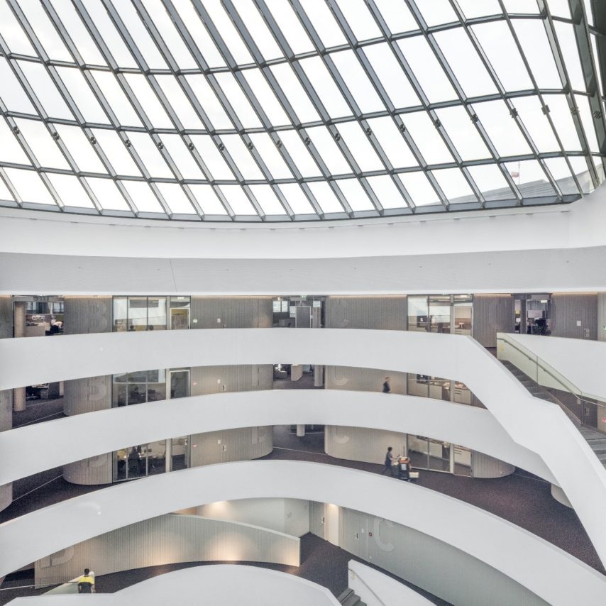 Most architectural glass today is produced using the float glass process. At Guardian Glass, we produce our float glass in various standard thicknesses and sizes, which can then be further processed. Float glass has specific properties in terms of color, transparency, emissivity, strength, pressure resistance, heat resistance, and chemical resistance. By laminating or coating the glass, we can add properties that allow the glass to perform and look its best for your project.