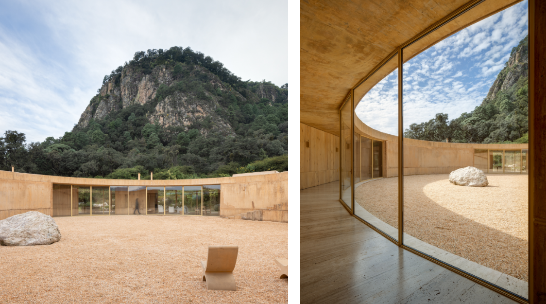 Hacienda La Luz, ubicado en Tetecala, Morelos, destaca por sus ventanales curvos de vidrio gris Guardian Glass que ayuda a crear un equilibrio ideal en la entrada de luz natural, promoviendo confort visual y contribuyendo a ambientes internos más agradables y acogedores que se integran elegantemente con el entorno natural, creando una transición fluida entre interior y exterior