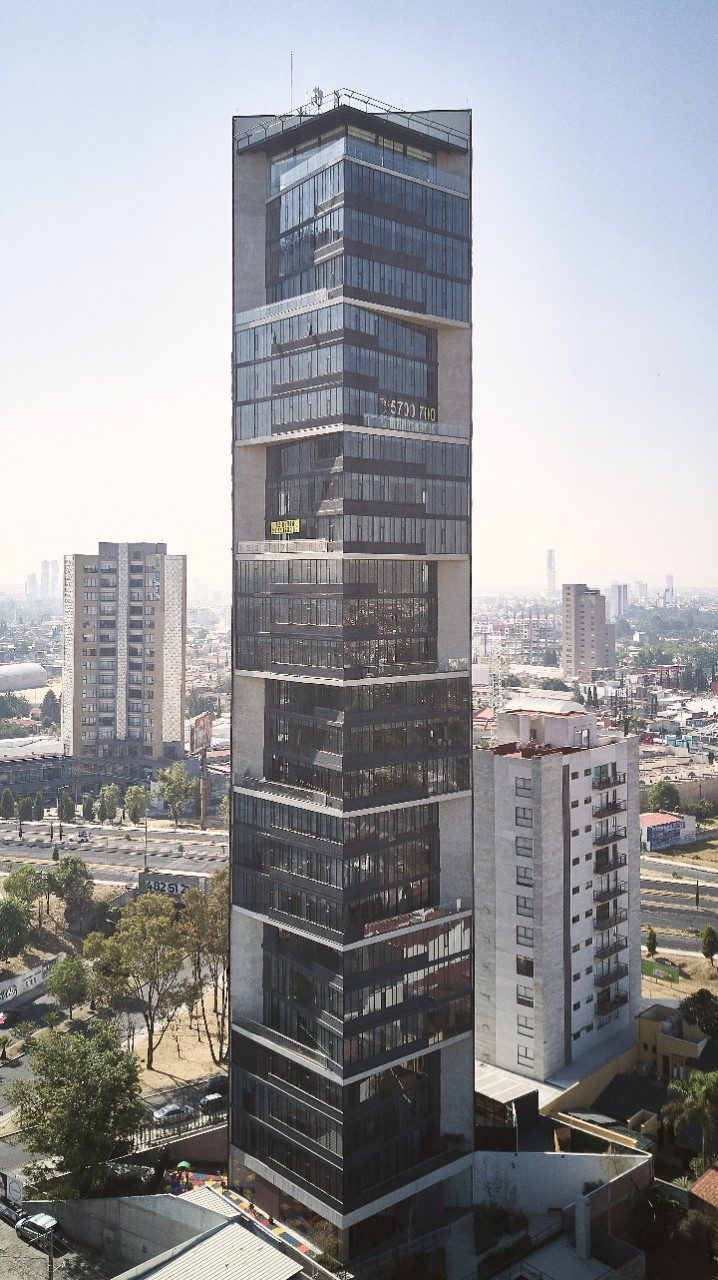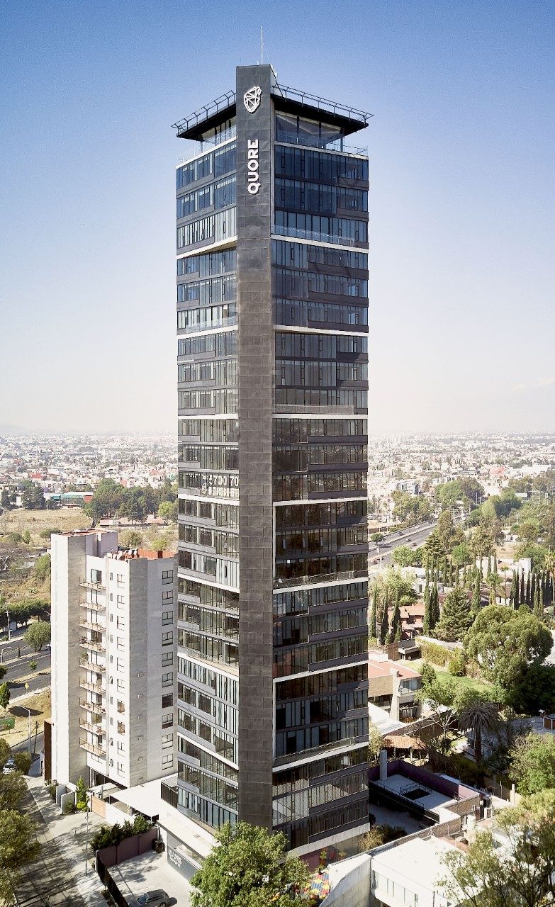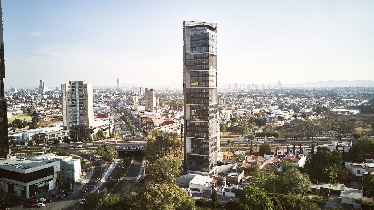 Residencia Quore en Puebla, México, de LOZ Group Architects, cuenta con SunGuard® NE 50 en vidrio transparente. La torre acristalada ofrece a los ocupantes vistas panorámicas de la ciudad desde cualquier ángulo y se integra perfectamente con el entorno para crear un impacto racional y emocional más allá de las paredes con espacios más funcionales y modernos.