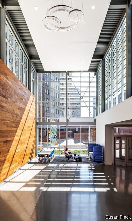 With its generous windows made of SunGuard® SN 68 on clear and UltraClear™ glass, the building achieves bright, airy spaces that feel inviting to university students, staff and guests. The solar and thermal performance of the glass also reduces the energy used to keep interiors comfortable. The result is a living model for wellbeing and sustainability that brings people together.