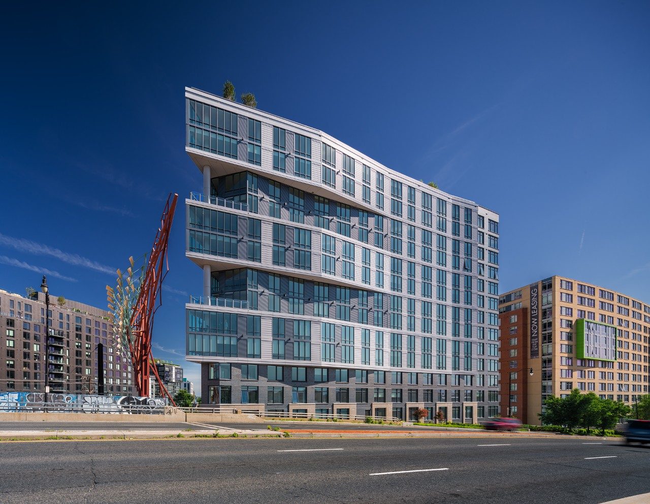 A new architectural landmark for DC and a gateway to the city’s NoMA /Union Market neighborhood, The Burton extends glassy acute angles into a bustling urban intersection.