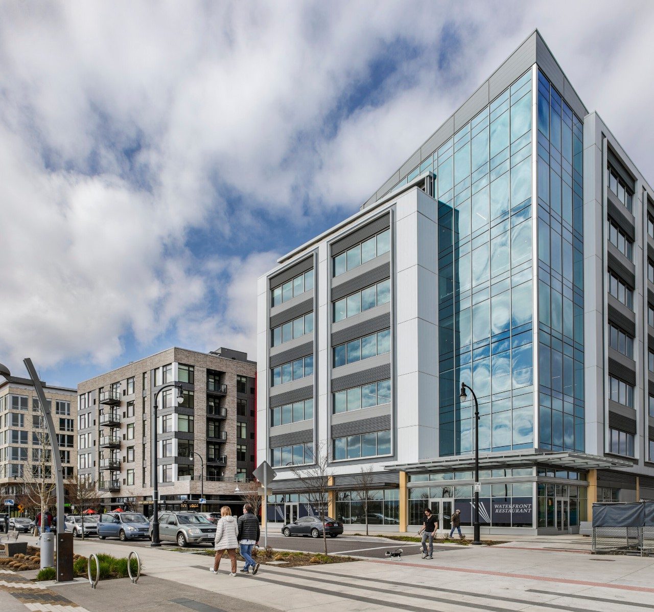 As the first office building developed at The Waterfront Vancouver, The Murdock sets the tone with its distinctive and forward-thinking design. Transforming an abandoned site into a vibrant mixed-use space, The Murdock not only welcomes a burgeoning community but also pays homage to the Columbia River just a short block away. Drawing inspiration from the shapes of a marina, the building’s gentle angles evoke the prow of a ship. Its light and airy layout offers breathtaking views from its expansive windows clad in SunGuard™ SNR 43 and SN 54 coatings on clear glass. SunGuard SN 54 helps tenants fully experience the sights with its ability to reduce glare, while both coatings help achieve a sophisticated, neutral aesthetic and high performance.